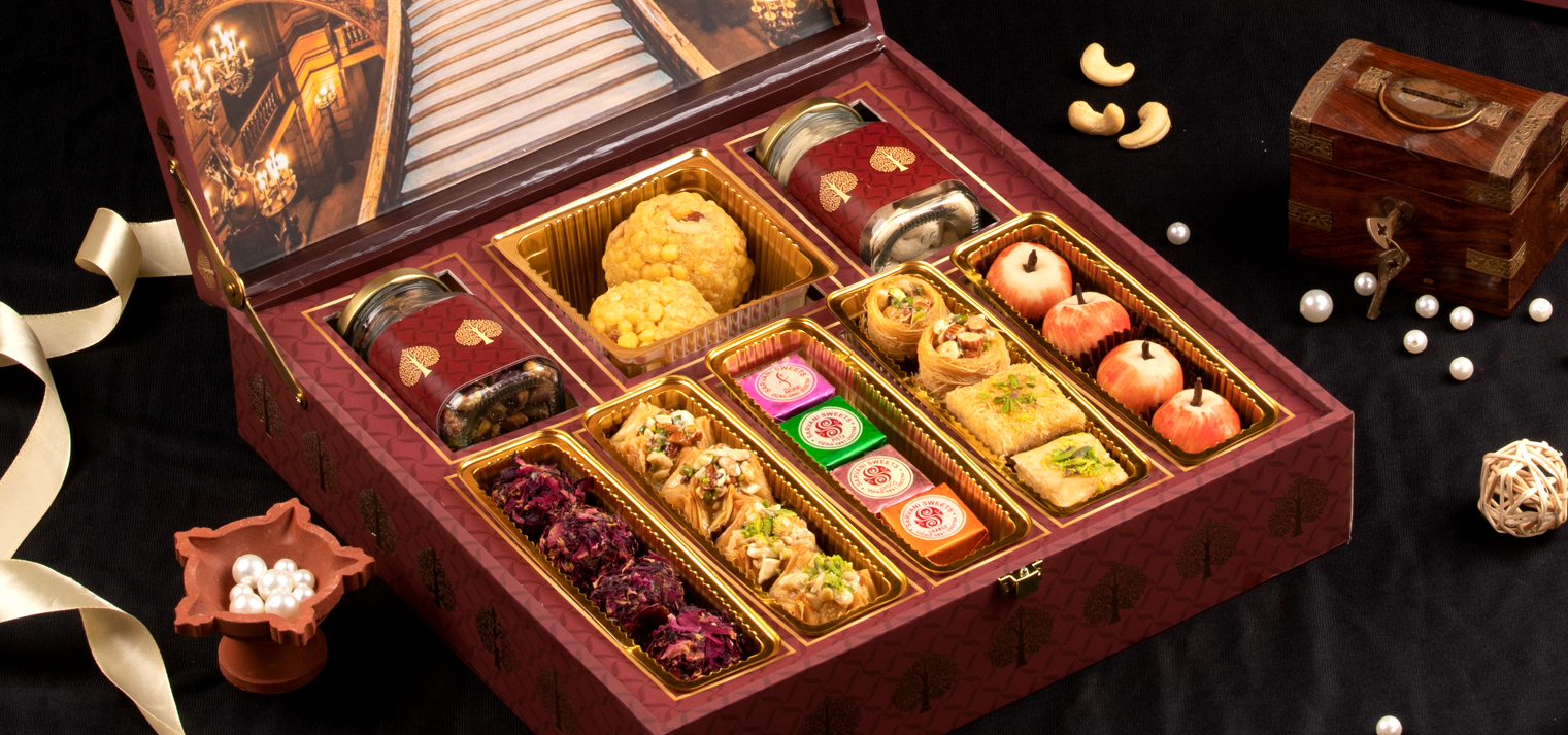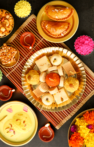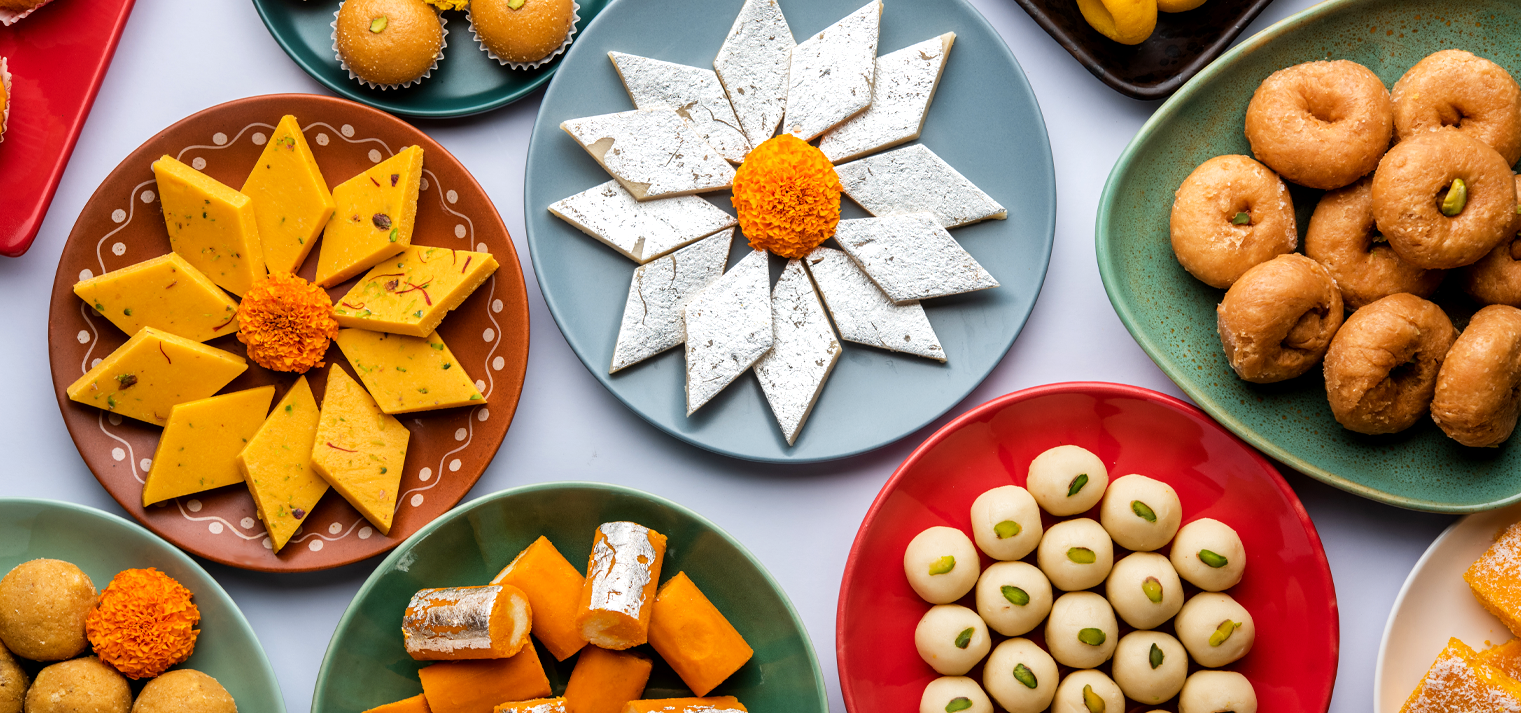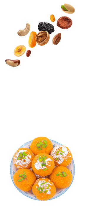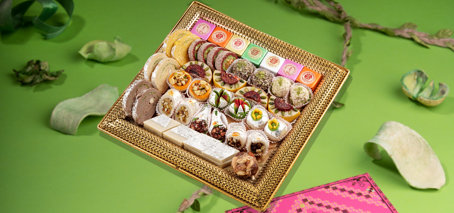 A wide array of sweets: traditional classics, dry fruit confections, ghee sweets, milk & paneer based sweets.
